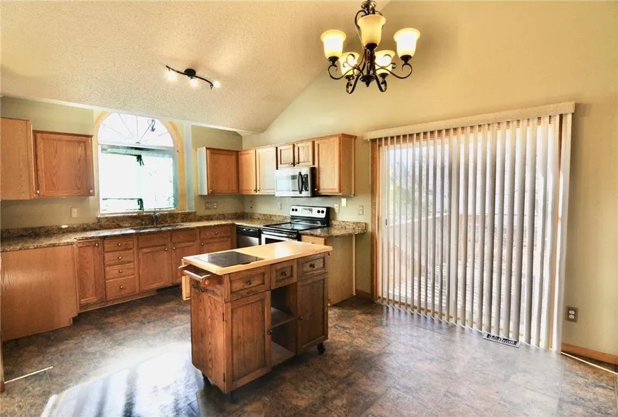 Beautiful 4 bedroom home on corner lot in demanded Farmington neighborhood! Open and airy vaulted main level floor plan with updated kitchen featuring granite counter, stainless appliances & rolling island included! Huge window over sink pours the light in. Walkout from dining to relaxing deck and fully fenced backyard with lush greenery. Awesome additional courtyard green space immediately behind home. Side loading garage with ample storage and entry into foyer and convenient main level mudroom/laundry. Storage shed included. Cozy gas burning, brick fireplace. 3 bedrooms upstairs with a an owner's suite featuring a walk thru full bath and walk in closet! 4th bedroom on main level. Laundry room on main level. Awesome ISD192 schools. Only two blocks from Prairie View Park and extensive trails looping the ponds! Neutral decor and turn-key ready home awaiting new owner. Won't last, hurry!
