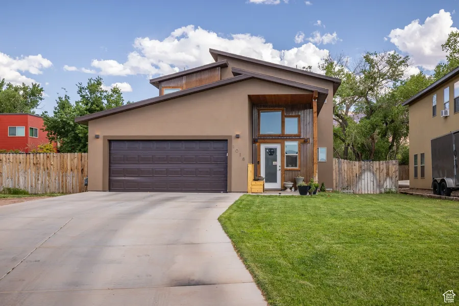VALLEY VIEWS - A 5-bedroom, 2.5-bathroom sanctuary with superior trail access-welcome to your private gateway to Moab's wild beauty. The 950 square foot main floor of the home celebrates an effortless blend of modern comforts and natural elements. The kitchen, complete with rich wood cabinets, stainless steel appliances and concrete flooring, anchors the main living area, an inviting space perfect for hosting or settling in with loved ones for the evening. The main floor is also home to the spacious primary bedroom, featuring a walk-in closet and an en suite that grants a luxurious double vanity and an artfully tiled shower that feels like a retreat after a long day of adventure. Up the stairs, another 4 bedrooms and a full bath complete the 950 square foot second story. As you step outside to the backyard, you are greeted with a pristine and lush fenced-in yard and a side garden that promises seasons of fresh, homegrown produce, flowers or native vegetation-a perfect 0.16 acres for those with a green thumb. With unbeatable access to Mill Creek Canyon, hiking trails and swimming holes, this is your home you can hit the trails with ease and take in everything Moab has to offer with the convenience of access to downtown near the Mill Creek Parkway!