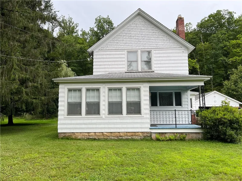 WELCOME HOME! Cute two story home with detached two stall garage. Open kitchen includes a dining area and sitting room. You will love the unique wine cellar. Have your morning coffee in the sunny breakfast nook. Laundry room off the kitchen. The brick fireplace in the living room invites you to relax and feel the warmth of a crackling wood fire. A large bathroom features a double sink and walk-in bathtub. Office/study adjacent to the living room. Small family room off the kitchen. Three bedrooms on the 2nd floor. Accessible ramps at the back and side entrances. Garage includes electric, wood stove, storage cabinets, and a workshop. Tin shed allows for yet more storage. Outdoor living space includes a backyard Pavillon. Gas stove with hood/fan, microwave, clothes washer and gas dryer included (as is condition). Property "AS IS". Access a total of 37 acres from West Washington Street. Enjoy private hunting, hiking, or four wheeling. Timber Rights convey with the sale of the property. The forested hillside was harvested approximately 10 years ago. Close to Pitt-Bradford. Realize the value and potential for this property! Call or text listing agent to make your appointment today!