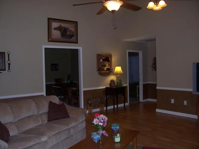 This 3 BR 2 BA brick home located 3 miles west of Danville is located on a shaded lot in newer subdivision. The split open floor plan with vaulted ceiling has wood lamiate flooring, oak cabinets and back deck. All electric with wood burning furnace which also heats your water. Across from the home is a fenced lot with water and electric for your animals. City water and natural gas available. Contact Beth George for more details on owning this home with -0- down.