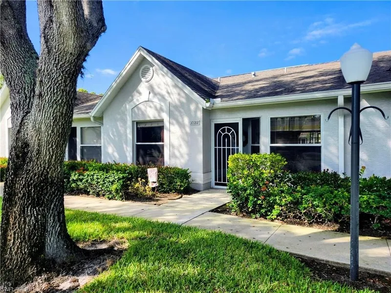 Here's your opportunity to own your own villa in sought-after Regent Park with an incredible location and great amenities. This attached villa is bright and sunny and opens up to a beautiful courtyard and private pool for the complex. Two bedrooms and a flexible den, kitchen with sunny breakfast area, open living area, and relaxing screened lanai. Private Master Suite looks on to the sunny courtyard and opens to the lanai. Included are a covered parking spot, extra storage and a grilling station right outside your lanai! Regent Park amenities include the wonderful community pool just steps away down the street, tennis courts, basketball, a beautiful lake for sunsets, sidewalks throughout the community, and safe roads for biking, skating or even your own golf cart! Regent Park is a quiet and safe family-friendly and dog-friendly community West of I-75 and Livingston Road that is just a few short miles to Vanderbilt Beach, Wiggins Pass and the best Beaches in Naples! You are close to great restaurants, convenient shopping, and all that Beautiful North Naples has to offer! Easy to show, Seller can close quickly, don't delay, opportunity is knocking on your door!