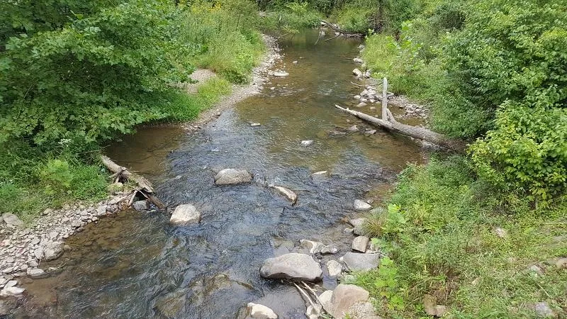 Bridge seems stable - per seller - however, far side of bridge has washed away, tour at own risk, use caution when crossing and do not drive across with vehicle. Seller offering a credit to fix bridge (ask agent for details).