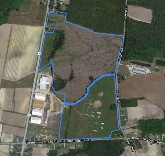 Call George Manning at 252-559-9272. This property consists of 2 tracts. The first tract has 63+/- acres with 1,357 ft. of road frontage on Hwy 91 and 974 ft. of road frontage on Newell Road. This tract also has a 1/2 acre pond. Timber was cut a year ago. This can be replanted to become a good Timber investment, pasture land or large homesite tract. The second tract has 38+/- acres with 1,265 ft. of road frontage on Mt. Herman Church Road and 1,418 ft. of road frontage on Newell Road. This tract was previously cultivated land with a high chain link fence that surrounds all the road frontage. Call George Manning at 252-559-9272 for more information.