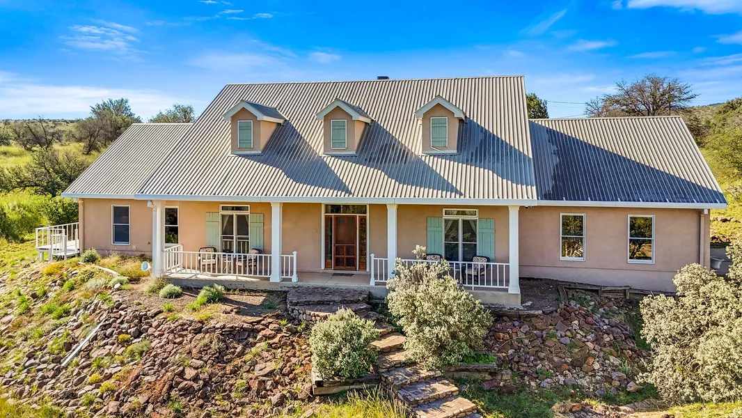 Three bedrooms, two bath 2,200SqFt stucco home on 5.58 acres in the desirable Limpia Crossing Subdivision located eight miles north of Fort Davis, Texas. Conveniently located near the entrance of the subdivision, the home affords panoramic views of the Davis Mountains from the covered front porch. Stained concrete floors throughout the home. Open floor plan showcases the living area and den that share a 2-sided rock faced gas fireplace. Formal dining area with built in storage. Gourmet kitchen with granite counter tops, abundant storage, stainless steel appliances, breakfast bar and informal dining area. Utility room with front loading washer and dryer is located off the kitchen. Sequestered and spacious 360SqFt primary suite with sitting area, private east facing outdoor deck and two separate dressing areas each with their own vanity with ample storage and walk-in closet with built-ins. Water closet with bathtub and walk-in shower. Two nicely sized guest bedrooms on the west side of the home share a hall bath with walk-in shower. Over-sized two-car attached garage with three storage closets. Observatory and storage shed.