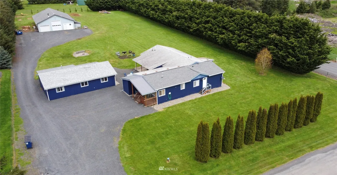 NEW PRICE! Back on market due to buyers contingency failed. Sellers are highly motivated. 3 bedrooms plus an office, 3 baths & huge great room w/propane fireplace. Heat pump, laundry/mud room, outside entertaining space, plenty of garden space. Addition was permitted and transforms this from a manufactured home to a 2319-sq. ft. spacious home. Finished 24 X 40 multipurpose workshop has endless possibilities plus a huge 40 X 60 shop for all your storage needs, toys, or set up shop to work on vehicles. 30-amp service for RV next to shop. Private corner lot surrounded by trees and partially fenced. Only 4 miles from the freeway and conveniently located halfway between Seattle and Portland.