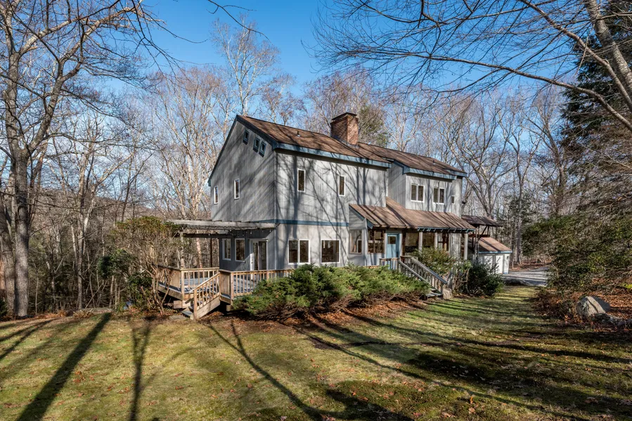 Introducing a charming contemporary home nestled in the countryside of Lyme, CT. This home is designed to bring the beauty of the outdoors inside with its oversized windows capturing scenic woodland views. Step into the kitchen, complete with a cozy fireplace, perfect for warmth and ambiance. The living room with the second of three fireplaces, opens up to a deck, overlooking the backyard. Ample windows continue to showcase nature's beauty throughout the home. For special occasions, there's a formal dining room with a charming picture window. A main level study/den provides a tranquil space with its own picture window offering meditative views of nature. The primary bedroom awaits with an ensuite bath, along with the delightful feature of its own fireplace, perfect for snuggling up on chilly nights or enjoying cozy mornings. Adjacent to the primary bedroom, you'll find a convenient space for an office or for hobbies. Additional features include two more bedrooms, a hallway bath, and a finished attic that offers a creative treehouse-like play area. The lower level boasts a finished and heated room in the walkout basement. Lastly, the deck overlooking the backyard is ideal for outdoor dining and entertaining. This home presents an opportunity to embrace a country lifestyle in the serene beauty of the rural and historic town of Lyme. Located halfway between New York and Boston.
