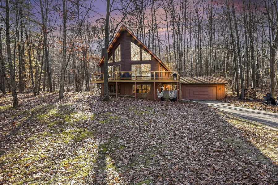 Welcome to this renovated Canadian Lakes chalet, a perfect blend of 'Up North' charm and modern comfort, making it a great place for a getaway or full-time living. The home is warm and inviting with red cedar walls and knotty pine ceilings. The main level features a cozy living room with a wood fireplace, an updated kitchen with new stainless appliances, two bedrooms, a full bathroom, and a porch with a wooded view. Upstairs, the open loft serves as a large bedroom with its own full bathroom. The walk-out basement is an entertainment hub with a game room, a second fireplace, a home theater with a 120-inch screen and stadium seating, a fourth bedroom, a full bathroom, and a laundry room with two sets of new washers and dryers. Outside, you'll find a hot tub, a fire pit area, and a two-car garage. Located across from Lost Canyon Lake, this home includes access to Canadian Lakes' premier amenities like private lakes, golf courses, pools, and more, offering a truly amazing lifestyle.