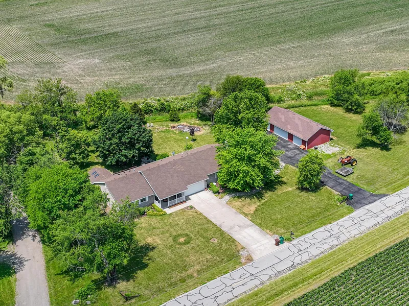 Beautiful ranch home situated on just under 2 acres in a secluded country area. Interior features include formal dining room, expansive updated kitchen with breakfast bar and large eating space, granite counter-tops and back-splashes, all stainless appliances stay, family room with fireplace, rec room that could easily be turned into a 4th bedroom, 4 season room adjoined to master bedroom and 2.5 bathrooms. Enjoy backyard activities thanks to easy access to deck from master bedroom or kitchen, large backyard, numerous trees and fire pit. Detached 30 X 50 finished and heated out building can be used for untold job related uses, supplied with 200 amp service and negotiable electric car lift. Easy access to 4 foot concrete floor crawl space from outside entrance. Convenient access to local sites and highways. Only a couple short minutes from I80 access. This is a must see! Zoned ag so chickens and other livestock are welcome!