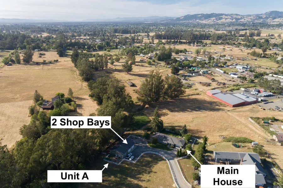 Amazing Country Views!! 2.5 Acres: Great for Horses, Animals, Farming, and Gardening. Main House: 3/2, 1982sf, Private Deck with Hot Tub, New Paint inside & out, New carpet, New on-demand water heater, Well Pump Control Box replaced, All ducting replaced with rigid pipe, Lifetime Seamless Gutters, and more! Unit A: Detached 2/2, 1350sf with a Primary Ensuite Bathroom. Shop: 1050sf has 2 Bays with Commercial Style Roll-up Doors. RV, Trucks, Equipment, and Toy Parking: Shop Bays and Parking Pad are perfect! Well: 14.3 GPM and Filter Treated. Septic: Dual Leech Lines with Diverter Valve. Grey Water Systems: With dedicated leech lines for bathroom sinks, tubs, showers, & laundry. A dream come true out in the country!