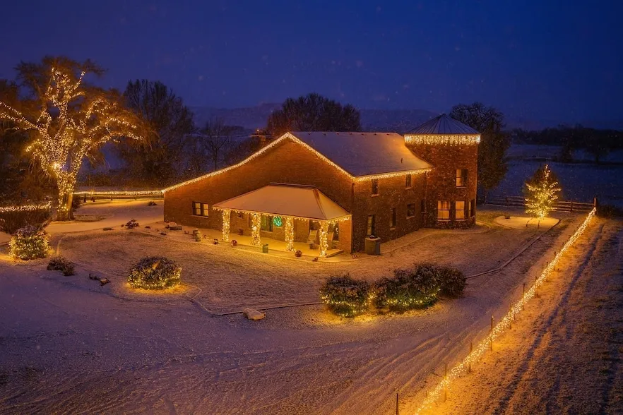 Privacy Views on 7.6 Acres..10 minutes to downtown Grand Junction Rustic elegance and modern efficiency, this nearly 3,800 sq. ft. custom brick home sits on 7.6 acres w/sweeping mountain views. Designed by the original owner/builder this one owner home is both energy-smart and low-maintenance with a complete 10 kWh solar panel system, 2" foam + blown insulation, Jeld-Wen low-E windows with blinds, in-floor heat, air conditioning (not swamp cooler), and thoughtful custom finishes throughout. Property Features Land & Water: 7 Irrigated acres, pond, productive hay pasture (currently in corn), fenced grazing area, manicured yard, raised garden beds, fruit trees with 12 zone sprinkler system to all vegetation. Irrigation piping to remain with the property making this a move-in property. Farm & Animal Facilities: Run-in barn offers clever easy clean removable panels to clean, deluxe chicken coop with run and easy access egg collection, dog pen with protected dog kennel area, tack room with power, cattle guard and fencing and gates fully set up for cattle, horses, chickens, & dogs. Outdoor Living: Drive in on asphalt driveway, two covered porches, mature shade trees, privacy and quiet in this North Area of Grand Junction with just 10 minutes to shopping. Breathtaking mountain views and sunsets. Workshop & Indoor RV Storage 66 x 80 Heated & Cooled Workshop with 21' ceilings 220 power, reinforced floors, R25 walls & R30 roof Divided workspaces, Workshop and RV storage bay areas (12 & 14 doors) Some shelving and bike rack included Exterior covered storage for equipment and firewood Home Highlights: Open Concept Living Dramatic vaulted 17 ceilings, cedar-mantle,new wood-burning stove with custom wood storage closet, central vac, and custom lighting. Chef s Kitchen: Quartz counters, rustic hickory cabinetry with tall uppers , custom eat-in island, large double convection ovens, gas cooktop, high-end fridge/freezer, pantry, appliance garages, and deluxe water purification system. Primary Suite: Split design from main living areas with spa-like bath, double-entry shower, cedar-lined walk-in closet, private access to covered porch, and 14 swim spa (included), plus a 8x8 bonus safe room. Bonus Loft: Custom barn wood feature wall and loft area perfect for displaying treasures, collectibles, or personal hobbies. Additional Loft Space: Large Bunk room + crafting area (craft table & hutch included)stone-detailed turret ideal for office, gym, library or kids playroom.