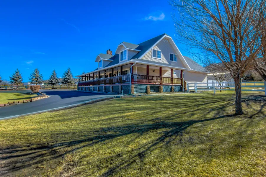 This beautiful home catches everyones eye when they come into the neighborhood. The wrap-around covered deck is just the beginning. Manicured yard, vinyl fencing, open back yard, large metal shop/garage behind the home with fruit trees, possible irrigation and views, views, views. Interior features a large living room with vaulted ceilings, rock fireplace, large loft, Kids Kave, master bedroom on main floor, open kitchen with dining area, Arizona room w/views to the south and it lets in the winter sun. There are two upstairs bedrooms with a bathroom and a large room that can be a 4th bedroom or large family room/guest room that has access to the garage below and back door. Master bedroom features his and her bathrooms with a large walk in closet. Lightly lived in, well cared for home