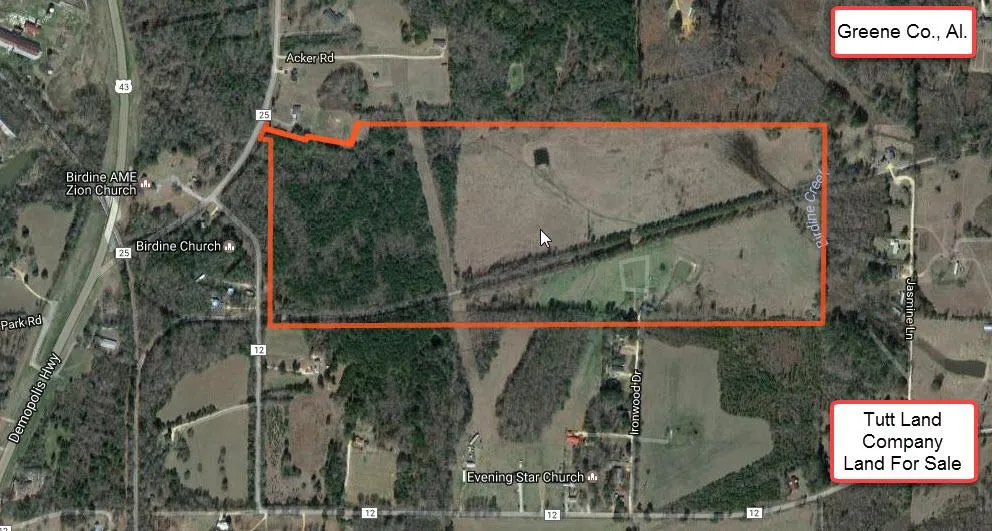 The Birdine Tract is located just north of the Black Warrior river and 8 miles from Demopolis. The east side of the tract is nice pastureland and there are 33ac+/- acres of cutover timberland on the west side. The farm has road frontage, power and water.