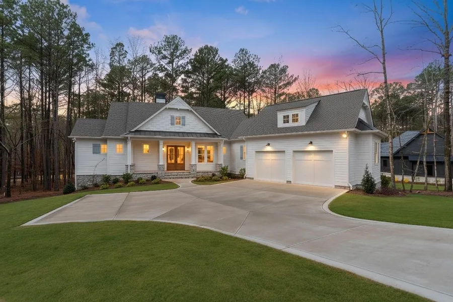 Welcome to a true masterpiece of modern living nestled within the serene, gated lake access community of Chapel Springs at Lake Oconee. This brand-new construction by PeachState Custom Homes is a testament to exceptional design and craftsmanship, offering an unparalleled lifestyle on a sprawling 1.77-acre wooded homesite. This stunning residence boasts four spacious bedrooms and three and a half beautifully appointed bathrooms, complemented by a full finished basement that provides endless possibilities for entertainment and relaxation. Step inside to discover an open floor plan that seamlessly blends elegance with functionality, enhanced by rich European white oak floors that flow throughout the home. The chef's kitchen is a culinary dream, featuring a large island with a breakfast bar, state-of-the-art Z-line stainless steel appliances, and a gas cooktop. The adjacent breakfast area is perfect for casual dining, while the great room, adorned with a cozy fireplace, offers a warm and inviting space that opens to a covered trex deck, ideal for alfresco gatherings. The owner's suite is a sanctuary of comfort and luxury, showcasing an accent wall and abundant natural light. Indulge in the spa-like ensuite retreat with custom tile, a soaking tub, dual vanities, and sophisticated closet systems that provide ample storage. This thoughtfully designed home also includes a gym/flex space to accommodate your lifestyle needs and a flagstone-covered patio for outdoor enjoyment. The Chapel Springs community offers exclusive amenities such as lake access, a pool, and a playground, ensuring a vibrant and engaging environment for residents of all ages. Experience the perfect blend of elegance and comfort in this extraordinary Lake Oconee retreat. This is more than a home; it's a lifestyle waiting to be embraced.