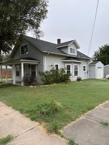 Charming home located on corner lot. 1.5 stories, 3rd bedroom 2nd floor. Updated kitchen, main floor utility room, 2 baths, large living\dining room. Attached single car garage. 36x25 outbuilding All appliances stay (not warranted), washer\dryer (not warranted). Home is selling as-is, where-is, with no warranties expressed or implied..