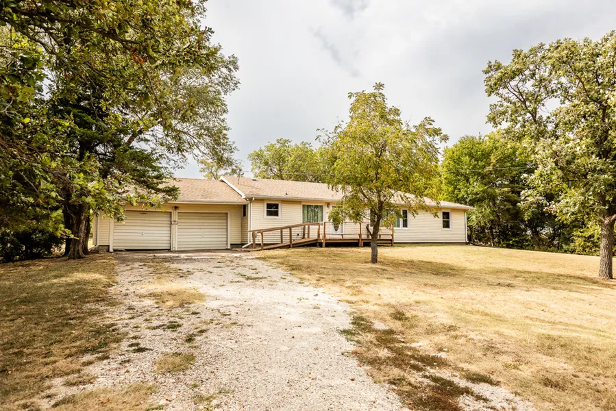This 3 bed, 1.5 bath ranch house sits on 3 +/- acres and is located just outside Woodbine, Kansas. The house was built in 1960 and has 1,568 finished square feet on the main level, a full unfinished basement, and a two-car attached garage. It has beautiful hardwood floors throughout, and has recently had the roof and windows updated. The house also includes a clothes washer/dryer, electric range, and refrigerator. Utilities include electricity, propane, a private water well, a septic system, and a telephone line. The property also has many outbuildings including a 40'x60' machine shed and a 40'x48' barn with a fenced pen. The property is located on a hard surface blacktop road. Houses with acreage do not come up for sale very often in this area, don't miss this opportunity! Contact Trent Siegle at (620) 767-2926 for additional information, disclosures, or to schedule a showing.