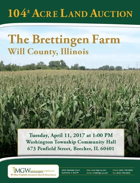 Legal Description: A brief legal description indicates The Brettingen Farm is located in Part of the West Half of Section 11, Township 33 North - Range 14 East (Washington Township), Will County, Illinois.