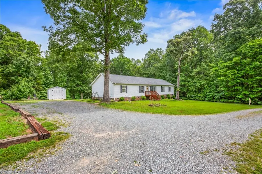 Incredible offering... SCHEDULE NOW! Modular home on 8 acres, complete with a stream and possible second home site off of US HWY 311. This one owner home is in top shape. At over 2,000 sqft there is plenty of room with 4 bedrooms, 2 bathrooms, living room, and den. The heart of the home is the incredible kitchen showcasing a large island that opens seamlessly to the living areas, making entertaining a breeze. Cozy gas log fireplace in den makes for chilly nights. Elegant dining room boasts charming chair moldings. The great primary ensuite offers 2 separate walk-in closets, and separate shower and soaking tub. Step outside onto the expansive deck and take in the peaceful views of your private backyard, ideal for summer gatherings. 30 YR architectural shingles were used when the home was constructed, a newer heat pump within the last few years. 3 miles to Downtown Walnut Cove, 10 miles to Stokesdale, 19 miles to King, 20 miles to North Winston Salem. Situated in a USDA eligible area.