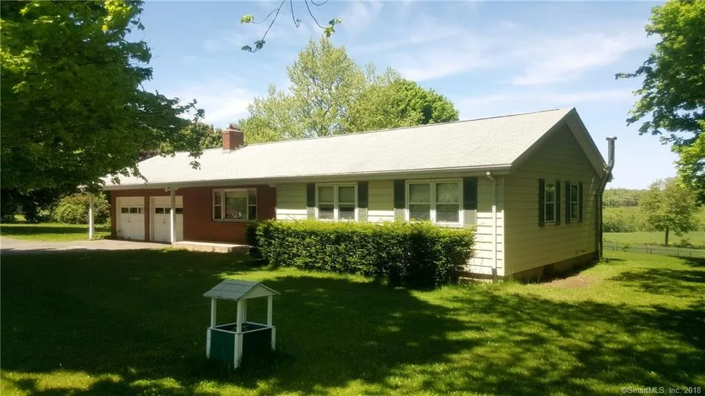 Potential Plus Ranch Home Located in Gilead Section of Hebron - One Mile to Glastonbury Town Line! Rural Farm Land Area - True Country Surroundings in EZ Commuter Location! One Acre Home site abutting 162+ Acres of Dedicated Open Space Farmland Preservation Land! 1256 SF Main Floor Living Area Featuring Living Room with Masonry Brick Faced Floor to Ceiling Fireplace with Heat-o-later, Wood Stove Insert, and Hardwood Floors! Open Design Country Kitchen Featuring Dining Area and Kitchen Area Views of The Farmland Preservation Open Space Lands! Three Bedrooms-2 Bath Floor Plan! All BR's with Hardwood Floors, Master Bedroom with Tile Walled Shower Stall Bath! In addition to 1256 SF of Main Living Level is 300+ SF of Finished Rec Room Area in the Lower Level. Open Front Porch, Private Rear Deck Overlooking Preservation Lands, Basement Area Workshop, and 24 'x 24' Attached Two Car Garage! 200 Amp Service, Multi Zone Weil McLain Boiler Fired Hot Water Baseboard Heat System, and Generator Hook Up! Plus In-ground Pool, Chain Link Fenced Area with Pool House! Less than 1 Mile to Two Local Public Golf Courses - Blackledge CC and Tallwood CC! Great Commuter Location to Hartford, Manchester, Willimantic, UCONN, and ECSU! Affordable Single Level Living - Home Needs Some Updating! Sale Subject to Probate Court Approval.