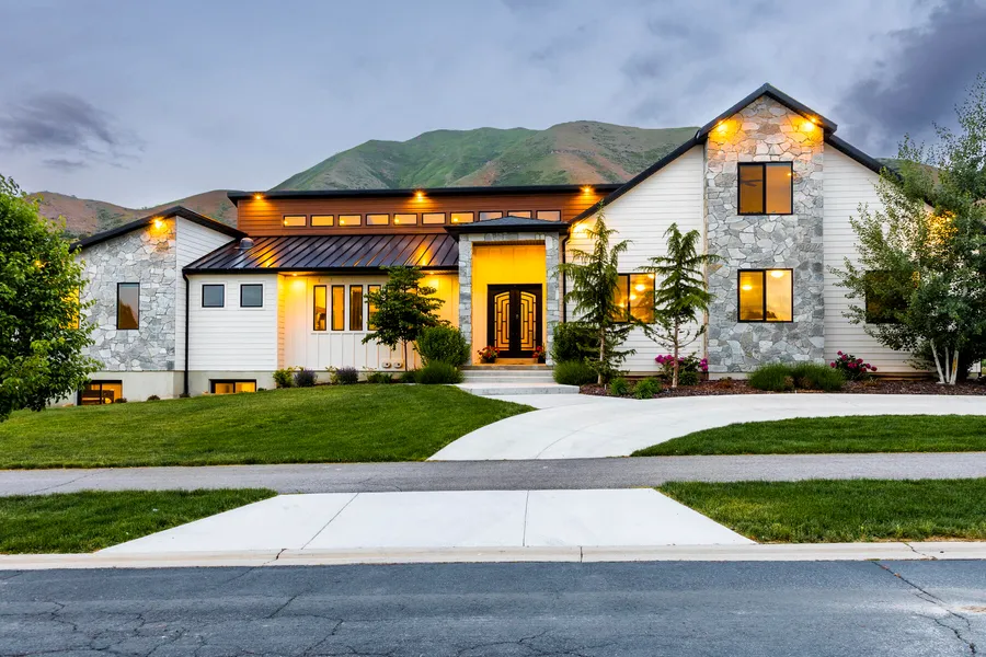 Located on Northeast bench of Mapleton, this Contemporary 2019 Parade of Homes home sits on 1 acre and backs the mountains and provides the perfect blend of privacy, luxury living and recreation. This beautiful home provides main-floor living, features a fantastic primary suite, a gourmet kitchen, a 2-Story family room and is perfect for entertaining! The gourmet kitchen features a T-shaped island, a butler's pantry, an over-sized fridge and freezer, double ovens, large gas range, double dishwashers, double trash compactors and even has hidden spice racks above and below the range. Enjoy music throughout the home and even outside with all of the buillt-in speakers. Enjoy your very own home theater and indoor soccer/football/dodgeball gym in the basement. Outside you will find the 8-car garage with epoxy floors, a lighted turf soccer/football field and a basketball/pickle ball court. The home also has a separate casita / ADU / mother-in-law apartment that features a large kitchen and family room with fireplace, 2 bedrooms, and 2 bathrooms.
