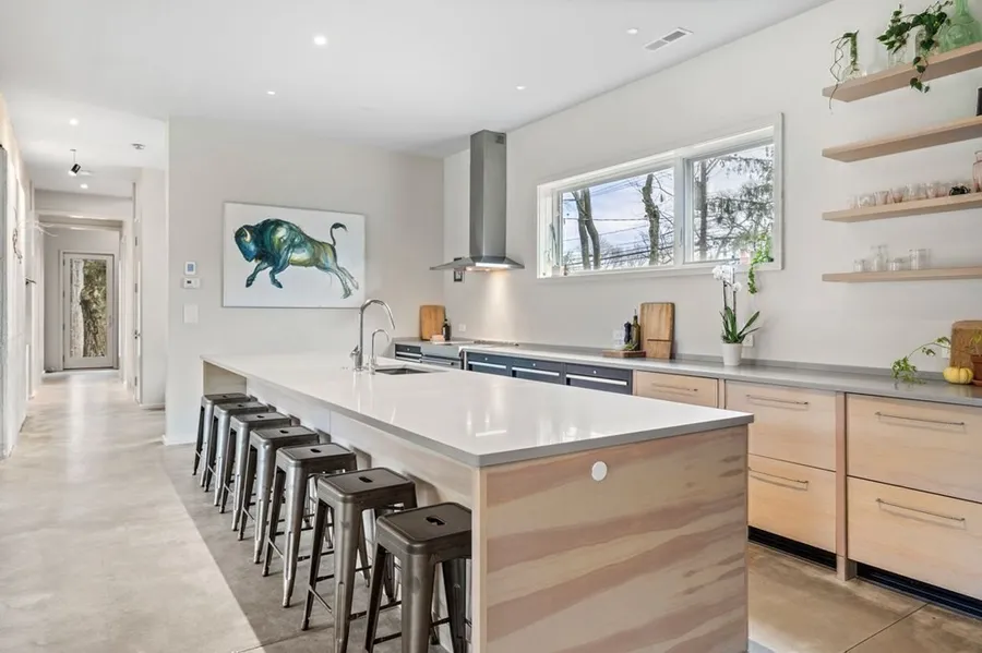 This Spectacular Modern Eco friendly home sits on a 3 ACRE secret garden compound next to the Blue Hills Reserve. The house, and separate 2,250sf heated artist/yoga studio, sit in the middle of a private arboretum full of exotic trees from around the world. Pathways through perennial gardens and over a creek offer endless serenity. This new construction is metal-clad, with top-of-the-line mechanical equipment, radiant heat, and hydronic forced air heating and air-conditioning systems. 24 studio-grade, in-ceiling Klipsch audio speakers are hard-wired throughout the home, ready to bathe you in music. Designed around nature, imbued with simplicity and efficiency for a high quality of living. A spacious kitchen, dining and living area, are perfect for entertaining. The guest quarters can be closed off and offers a separate, private outdoor entrance. This is an ultra-modern, multi-structure build in a secluded magical nature sanctuary, just minutes to the city!