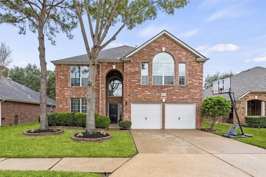 Welcome to this stunning two-story brick home in the gated section of the desirable Canyon Lakes at Stonegate neighborhood. Nestled into a quiet cul-de-sac and surrounded by mature trees, this home boasts incredible curb appeal. The backyard is a true oasis with a sparkling pool & spa, large covered patio, lush green space, and serene views of the waterway and walking path. Inside, tall ceilings welcome you into an open-concept layout featuring a cozy fireplace, granite countertops, a beverage bar, dining room, and a flex room downstairs. This home includes 4 bedrooms and 3 bathrooms as well as a large game room. The primary suite offers tall ceilings, a walk-in closet, and an updated bathroom with a glass-enclosed shower, soaking tub, and double sinks. Highly acclaimed Cy-Fair ISD schools, convenient access to 290/99/Beltway 8 as well as shopping, restaurants, & entertainment.