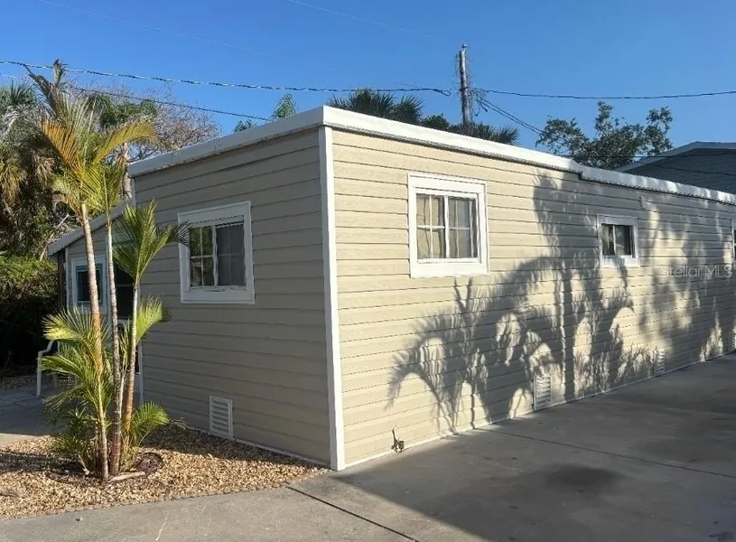 Seize the opportunity to claim your private slice of the Florida dream! This wonderfully updated unit is situated in a secluded area of the park, offering a side patio bordered by lush vegetation—the perfect opportunity to create your own private oasis. Crucially, this quiet location still offers immediate proximity to the community's heart: the Recreation Hall, Pool, Fitness Center, Spa/Hot Tub, Shuffleboard, and Cornhole! The seller made valuable & thoughtful updates addressing all major components after last year's hurricanes. This unit now boasts a New Roof, Siding, and Electric Service, along with a Brand New Kitchen and New Plumbing. The main living area also received beautiful New Luxury Vinyl Tile (LVT) throughout. The generous gross living area is a bright, blank canvas waiting for you to infuse it with your own personal style—all that's missing are your decor and furnishings! Enjoy your morning coffee in the cheerful, bright sun that streams into the living/dining area. This property also offers ample parking for both your vehicle and your golf cart.