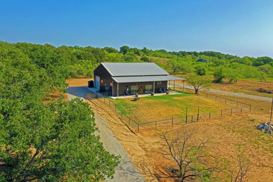Residence: 1,500 SF Barndominium on 51.16 acres that includes a master bedroom and attached bath with walk-in closet, tiled shower, and double vanity. 10 foot ceilings. Residence also includes a guest room, guest full bath, open living room, dining room and kitchen. There is also another restroom, utility room and 1,000 SF of insulated shop space with drive-thru capability. The residence has a rain collection system in place that has three (3) 2,500-gallon storage tank. The barndominium was completed mid-2023. The barndominium was constructed to allow for an additional 750 SF of living space to be above the main living space. Just one hour from downtown Fort Worth.