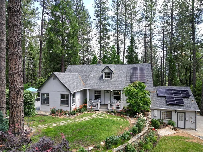 A Fabulous 40's home in Nevada City. Beautifully remodeled but keeping the Charm and Character of the 40's. This incredible home features a white vinyl Picket fence in front. A huge parking driveway and sits on nearly Level 1 and 1/3 acre lot. Lawn for the kiddos to play, garden areas and room for a pool too. This home OOZES charm from the moment you see it. Some of the upgrades include: Newer Roof, leaf guard gutters, Owned Solar, Expansive composite decking. Inside you will find High beamed and Coffered Ceilings, Crown Molding, Real Stone Fireplace with gas Insert and Built in Custom cabinetry. Beautiful Wainscoting, Custom interior trim, Wood Flooring, Granite countertops, newer appliances. An Eat in kitchen, with area to expand if desired. Two bedrooms with built in dressers and newly remodeled Bath all on the Main Level. Upstairs are two more spacious bedrooms and a full remodeled bath, Three Dormers bring in Loads of Natural light. The lower level consists of a Large Laundry room, full bath, Tile floor. There is an additional 400 sf space to add an ADU. Wait till you see the tricked out 4 car garage, with custom workbenches, abundance of Built in Cabinets too. This home will capture your heart for sure. Close to grocery stores, schools, shopping & downtown Nevada City.