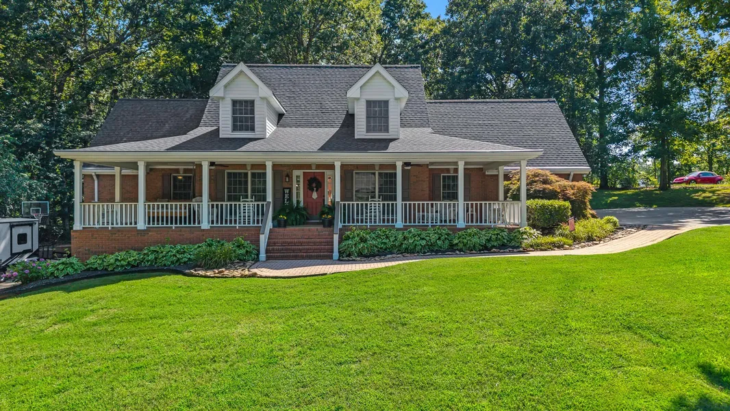Classic brick charmer with updates & space in Etowah! An expansive covered front porch sets the tone for this warm 3BR/2BA home with the primary suite on the main level. The main living area features hardwood floors, crown molding, custom built-ins and a brick fireplace. The remodeled kitchen (approx. 7 yrs) offers granite counters, subway tile backsplash, rich wood cabinetry, an island cooktop, stainless appliances, and great flow to the dining area. Retreat to a generous main-level primary suite. Upstairs provides two oversized bedrooms plus a large bonus/den, perfect for play, office, or media. A full unfinished basement delivers excellent storage/workshop potential and future expansion. Major system updates include a roof 3 years ago, HVAC systems 3 years ago,, new garage doors & openers (2 years ago), and energy-efficient Anderson windows. Outside, enjoy a wide front porch overlooking a manicured, tree-lined yard-ideal for breezy East Tennessee evenings. Convenient Etowah location close to town, yet with a peaceful, residential feel. Move-in ready with room to grow!