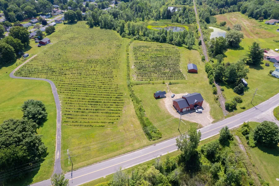 Blueberry farm with several thousand blueberry plants, designated as an Agricultural District. Property provides a tremendous amount of potential revenue. Also included in sale is the equipment on site that is used in operation of the farm, including TO20 Ferguson tractor, and spraying equipment. Blueberry processing/walk-in cooler on site set up for processing the blueberries. Property also features building with beautiful living quarters/apartment on second level. Apartment boasts wide open floor plan with hardwood floors throughout, a gorgeous granite kitchen with stainless steel appliances, gas fireplace, plus access to a balcony deck overlooking blueberry farm. Garage within building set up as a workshop with BendPak 10,000lb lift and 220V outlets. Lower level also has lobby/reception/office area, plus a kitchenette, half bathroom and warehouse area. Outbuilding on property makes great space to keep equipment covered.