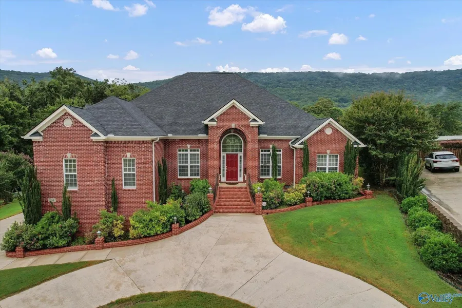 Rare opportunity to own a spacious, all-brick executive home situated on nearly an acre of land, with unbeatable mountain views! Its prime location ensures a short commute to RSA, Research Park, and Downtown Huntsville. Natural light fills this elegant residence. Featuring 5 bedrooms and 4 full baths, providing flexible living space, including a full ensuite with private entrance, perfect as a dedicated MIL suite or guest area. Luxury details like vaulted ceilings, marble countertops, and gleaming real hardwood floors elevate the space, maintaining a warm and welcoming feel. Amenities include large & open media room/studio, a 3-car garage, and a custom, fully heated and cooled sunroom (compl