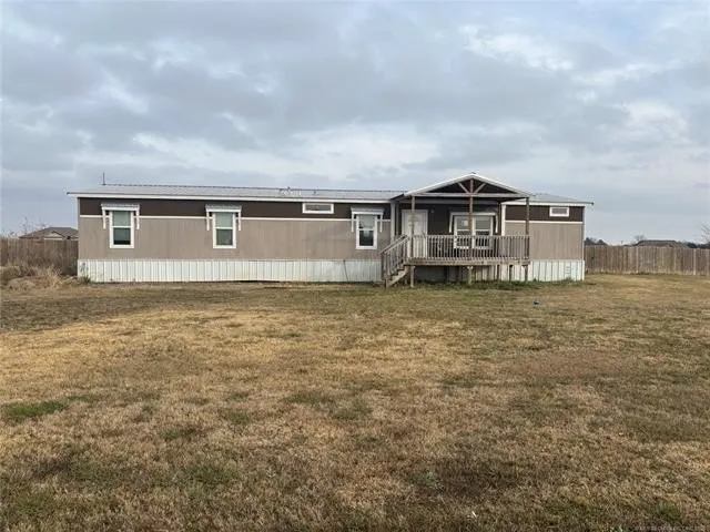 Manufactured home built in 2022 located at 104 Kade Ct, Durant, OK 74701. County records indicate the property consists is 1,944 square feet (court house), 5 bedrooms, 2 full bathrooms, and is situated on a 1.00-acre lot. Covered patio and deck on back of house. Located in the Calera School District.