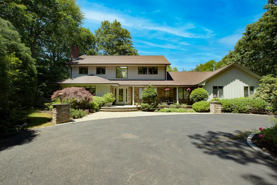 Pristine Colonial with 5 bedrooms, 3 full and 2 half bathrooms. Light and bright open floor plan with central air and hardwood floors. Gorgeous first floor primary suite with vaulted ceiling, dressing area and large full bathroom. EIK with granite counters and stainless steel appliances. Amazing opportunity for the car collector or hobbyist with an attached 3 car garage and a detached 9+ car garage with huge 2nd floor loft. Lovely landscaping especially in the country-club backyard with in-ground pool, waterfall and spacious patio. Situated on 2 acres with access to Crane Neck Beach Association.