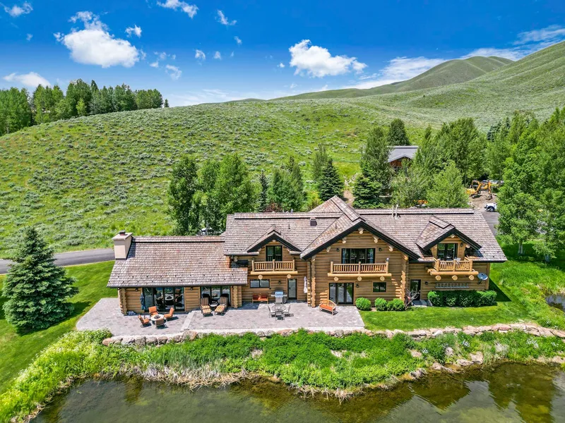 Stunning and peaceful setting, this custom lodge style home is located on its own pond with acres of open space and views in every direction. Estate sized custom log home located on a quiet cul de sac, this home was designed for entertaining. Spacious rooms, high ceilings, walls of windows, beautiful stone flooring in kitchen, dining and living room plus incredible master suite. Remodeled