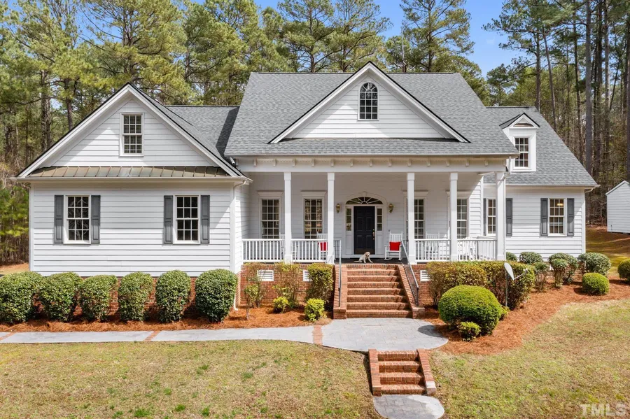 Custom built home just 1/2 mile into Chatham County and 3.5 miles from HWY 540. Hard to find 5 acre heavily wooded lot. Home offers 3109 heated sq ft, 233 sq ft walk in attic, 3 bedrooms on 1st floor plus a guest room/office and bonus room on 2nd floor. Huge rocking chair front porch, site finished hardwood floors in foyer, dining room, family room, kitchen, breakfast area, sitting area and 1/2 bath. Updates include 2nd floor HVAC replaced 2022, interior walls painted 2023, septic pumped 2022, roof replaced 2022. *CLICK ON PHOTOS FOR FLOOR PLAN"