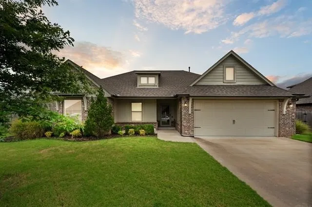 Beautiful home in the highly desired Highland Creek neighborhood, located in Broken Arrow school district. 3 bed 2 bath 2.5 car garage with large cul-de-sac lot. Gorgeous granite kitchen with stainless steel appliances, pantry, large windows that bring in lots of natural light, wood floors, shiplap accent wall in dining room. Spacious master suite with walk in closet, split bedroom floor plan with great storage. Garage has mini split heat/air, perfect for a home gym! Highland Creek has fantastic amenities including a park, pool, stocked ponds for fishing and walking trails. Welcome home!
