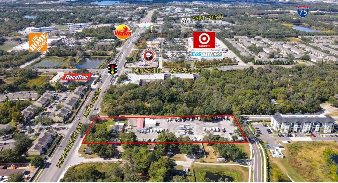 PROPERTY DESCRIPTION - The opportunity is to purchase a 2.97 acres rectangular parcel with 210' feet of frontage on Bloomingdale Avenue with has in excess of 50,000 cars a day driving by it. The site is cleared and currently used as a boat and RV storage yard with a residential house and upholstery shop in place. The site likely could be rezoned for commercial or mixed uses necessary to redevelop the site.