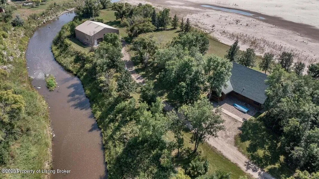 WELCOME TO TURTLE CREEK LODGE! FIRST TIME OFFERING - APPROXIMATELY 1,650 FEET OF RIVER FRONTAGE. BEAUTIFUL CUSTOM LOG HOME ON THE MISSOURI RVER WITH 10.34 ACRES AND BREATHTAKING VIEWS! Follow a beautiful private drive leading to this secluded home with sandy beaches and river property in front and TURTLE CREEK to the east, making great fishing all around! Built in 1997, and shows like new construction, featuring soaring log beams, open concept living, mud room, main floor laundry, 2 bedrooms, bath, and a great sunroom to watch the evening sunsets. The upper level offers additional sleeping quarters in the loft as well as one additional bedroom and bathroom. Other property features include a 42 X 48 shop with a designated heated workshop area, artesian well, situated on a private wooded lot with trails. Located only 30 minutes to Bismarck. THIS HOME AND SHOP IS BEING OFFERED COMPETELY FURNISHED WITH ACCEPTABLE OFFER.