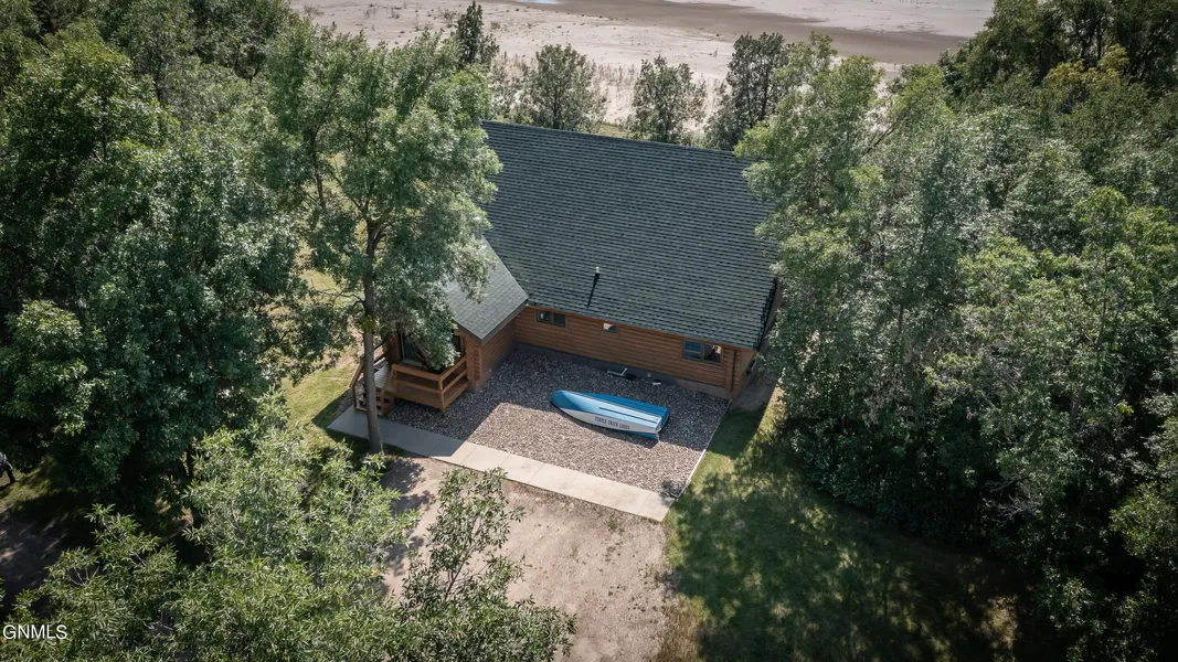 Custom Log Home on 10+/- Acres PLUS Shop! Nestled on 10.34 acres along 1,650 feet of Missouri River frontage, this log home offers a rare blend of rustic charm and modern comfort. Built in 1997 and meticulously maintained, the home features soaring log beams and an open concept living space that invites you to relax and unwind. Inside you'll be greeted with a spacious mudroom, and dining/kitchen areas adjacent to a delightful sunroom to enjoy river views and evening sunsets. Two spacious bedrooms, bath and laundry complete the main level. Upstairs features another bedroom, bath and a loft area with additional sleeping quarters. The property also boasts a 42 x 48 shop with a heated workshop area, ideal for hobbies and projects. Outside, explore sandy beaches and private wooded trails perfect for outdoor activities and relaxation. An artesian well ensures a reliable water source, while the serene surroundings offer peace and tranquility. Located only 30 minutes from Bismarck, this private oasis offers the allure of rural living with easy access to city amenities. Whether you're looking for a peaceful getaway or considering Airbnb opportunities, this fully furnished property promises a turnkey experience. Don't miss your chance to own this extraordinary property and make Turtle Creek Lodge your new home or investment.