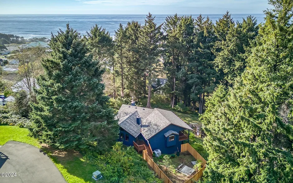 This one-of-a-kind property offers supreme privacy, breathtaking whitewater ocean and forest views, and sits on 1.38 acres in the heart of Yachats. Recently updated, the home features a remodeled kitchen with new counter tops, luxury vinyl plank flooring, and a new certified wood stove perfect for cozy days by the fire. With 3 bedrooms, 2 baths, and a den with a fireplace, expansive ocean view decks and a bonus room downstairs there's plenty of space to enjoy. The property also includes a greenhouse, fully finished shed, fenced garden beds, and berry bushes. Well maintained with recent roof replacement. Short distance to downtown yachats shops and restaurants, and multitude of trails and proximity to the beach. This dream property is irreplaceable. Nestled between the forest and the sea, Yachats offers an idyllic coastal lifestyle with breathtaking natural beauty, a mild "Goldilocks" climate, and a vibrant, engaged community. Known for its quiet neighborhoods, miles of scenic hiking trails, and access to world-class outdoor recreation, Yachats also boasts a thriving arts scene and educational opportunities. Conveniently located between Florence and Newport along scenic Hwy 101, this charming town features active local programs, and a strong volunteer spirit. With its small-town warmth and endless opportunities for adventure, Yachats is the perfect place to call home.