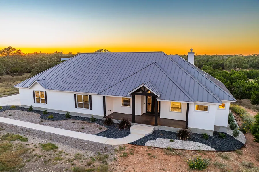 Discover your dream home in the desirable Tierra Linda Ranches! This exquisite new build, completed in 2024, sits on 5.28 acres & offers 3,505 sq/ft of elegant living space. With an open floor plan, the home features 3 bed/3 baths, perfect for comfortable living & entertaining. Relax by the gas starter fireplace in one of the 2 spacious living areas, or unwind in the versatile large media/rec rm that can serve as an office or family rm. The chefs kitchen boasts top-of-the-line appliances w/gas cooking & ample storage space, while abundant natural light showcases the quality finishes & custom craftsmanship throughout, including stylish fixtures & built-in bookcases. Step outside to the peaceful covered patio where you can soak in stunning Hill Country views. The oversized finished garage is a useful finishing touch. Enjoy numerous amenities offered at TRL, including a stocked pond for fishing, stables with horses, a private runway & an in-house fire department. With Ag exemption & abundant wildlife, this serene setting is an oasis of tranquility. You wont want to miss this amazing property w/the utmost craftsmanship & integrity. Its competitively priced to sell!