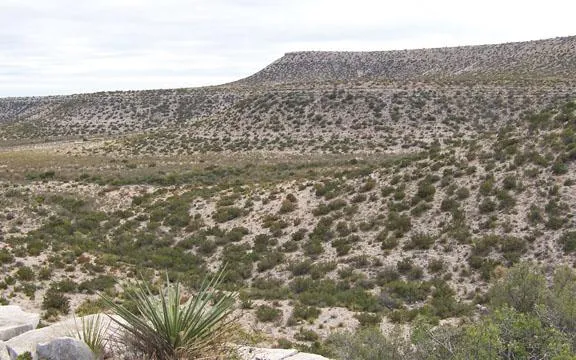 Terrain: The terrain of the property is very diverse, ranging from lower bottom country and wide flats elevating to rugged side slopes and high mesa tops. The lower flats have elevations ranging from approximately 2,200 2,400 feet, with hill sides and high mesas elevating to 2,700 - 3,000 feet. Limestone rock outcrops are common over much of the ranch, especially on hill sides, mesa side slopes and mesa tops. The bottomland areas and flats have productive, deeper soils. The ranch has a moderate to sometimes dense canopy of brush, being a combination of mesquite, greasewood, cedar, lote bush, white brush, chemise, prickly pear and althorn.
