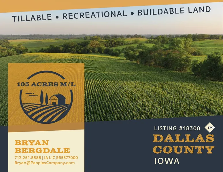 Peoples Company is pleased to present 105 acres m/l located along Meadow Road in Dallas County, Iowa, just south of Adel. This versatile property offers a combination of productive farmland, recreational appeal, and future building opportunities.