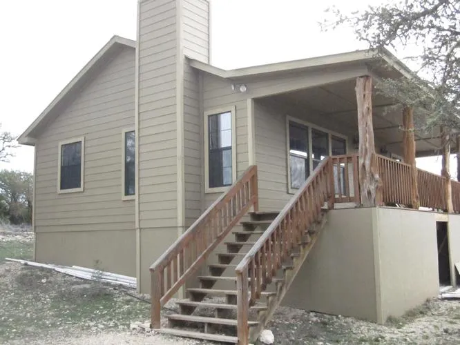 Bank Foreclosure. 2 Bedroom 1 bath, almost complete. Covered porch has a great view. Well, septic, and power are in place. Inside high fenced game preserve. Ranch has elk, red stag, axis, fallow, blackbuck, aoudad, whitetail, and turkeys. Great hunting. Three ponds on the property, one fed by the well. Private gated entrance off a county road. Less than one hour from Kerrville. Bank will finance finishouts of the home with approved credit. See broker for details.