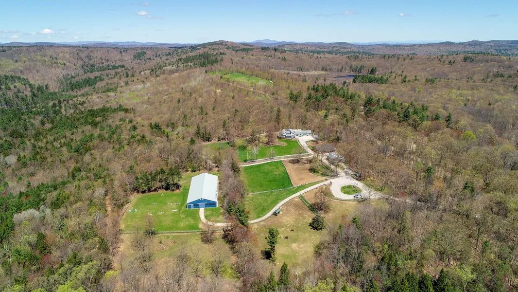 Located just two minutes from a country highway on a quiet, dead-end gravel road, Advent Hill Farm is a serious equestrians dream farm. It is privately sited on 105 acres with 10+ acres open - and most of that is wrapped in solid, permanent fencing. There are two barns, one with heated lounge, tack room, 1/2 bath, fire protection system and a newer 70' x 168' indoor with adjacent outdoor for all weather riding options. The 3BR/3.5BA 1984 passive solar contemporary has views, 3 car garage, standby generator and more!