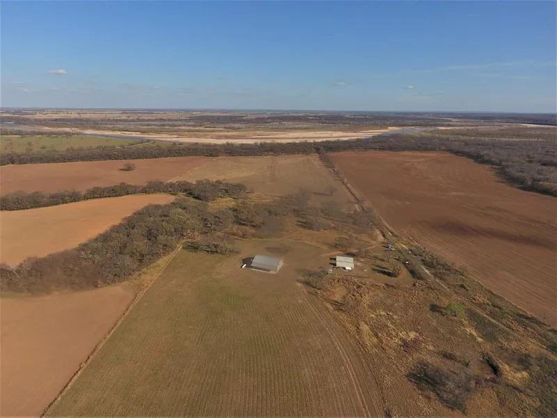 RED RIVER CORPS frontage, access off a Farm to Market road, and proximity to the Metroplex make this a one of a kind property. The Barndominium has a large living area with stage that would be perfect for entertaining guests. The house includes an updated kitchen, and three bedrooms downstairs. The upstairs loft features three partitioned bedrooms, TV area, and bathroom. This property has underground electric, two additional transformers, two container units with electric, and three RV hook-ups. There is approximately 40 acres of mature pecan trees, and approximately 20 acres of fertile Red River bottom land ready for cultivation.