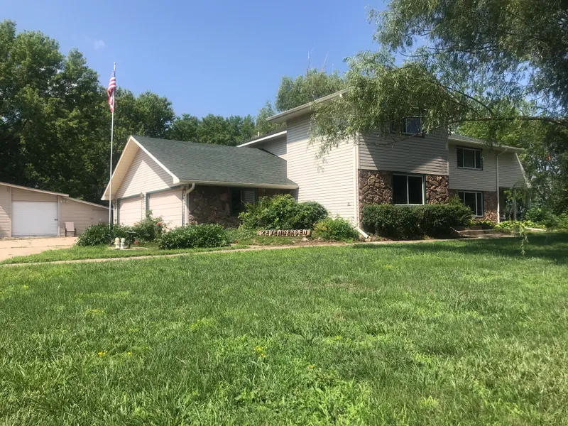 Are you looking for an amazing in-town acreage? Want an abundance of interior AND exterior space? This move in ready home boasts over 4000 sq. ft. of finished space plus a huge unfinished basement for storage and play, all on 1.37 acres of land! New roof, maintenance free siding, vinyl windows, and gutters all within the last 5-10 years. On the main floor you'll find real hardwood floors and a large two story open foyer with grand staircase. You'll find a formal living room with new carpet and French doors to a covered deck; formal dining room overlooking the backyard; office/library with new carpet; wood burning fireplace in a large family room, walk-in pantry, one bedroom, and a newly remodeled bathroom. The eat-in kitchen features French doors to the back patio, concrete countertops, coffee bar counter, and plenty of cupboards! Most of the main floor has been freshly painted white. There are 2 heat-pumps for zoned heating/cooling. You'll find four additional, spacious bedrooms on the second floor along with a large laundry room, and two full bathrooms. The largest bedroom is over 600 sq. feet, has four closets, a Jacuzzi tub, walk-in shower, book nook, and walk out deck to the backyard and patio below. There is a 4 car garage with workbench, side entry and 2nd set of stairs to the basement. Additional 1,000 sq. foot shed will hold a 5th car as well as tools and other outdoor "toys". Exterior areas include a covered porch (great for the grill or smoker) off the formal living room and a large concrete patio off the kitchen and at the base of the deck from the master suite. Landscaping includes numerous trees and flowers and a great tree line that cuts down on wind and provides all day shade! Much of the furniture will be available for minimal price, as well as an additional .25 acres (additional front yard) also available for purchase. Home warranty included with an acceptable offer.