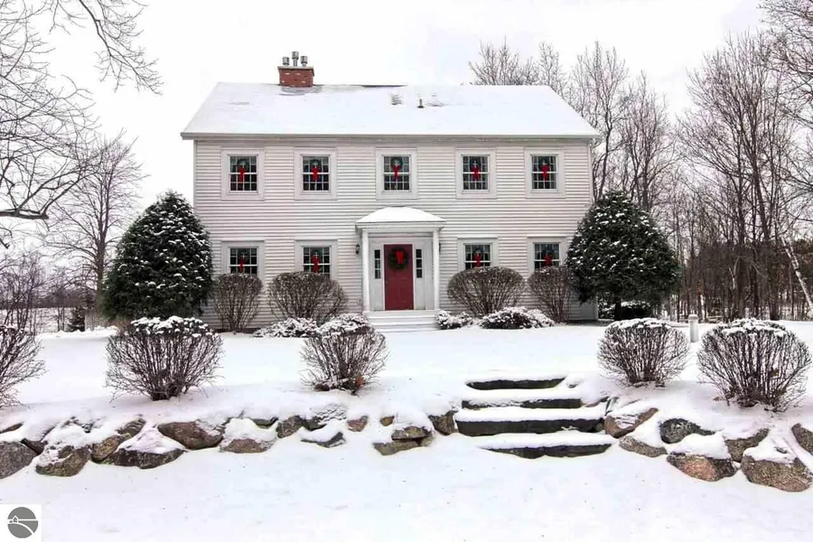 Beautifully designed and well maintained New England colonial home built in 2000 offers plenty of entertaining space with large eat-in kitchen, two living rooms, formal dining room, large deck, and lovely, private backyard. Master suite features gas fireplace, w-i closet, and tile shower. Third-floor attic has been finished to include 585 sqft...perfect for office, studio, or crafts. Located halfway between Traverse City and the Sleeping Bear Dunes National Lakeshore in desirable Leelanau County. Outbuildings allowed.