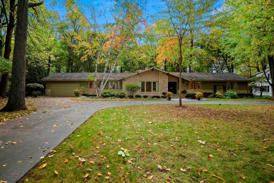 Custom home designed by architect Ray Prell inspired with a Frank Lloyd Wright Style. Double doors welcome you to a large foyer w/ slate floor. Spacious formal LR & DR w/ vaulted ceilings. Eat-in Kitchen with center island. Sliding door leading to a beautiful stone patio overlooking the landscaped .94+/- acre lot w/ wooded backdrop. Adjacent FR w/ built in cabinetry. Two wood burning FP's flanked w/ weather edge stone, MBR w/ double closet & full BA, 3 additional BR's & full BA, laundry room & 1/2 BA complete this home. Attached 2 car garage w/ epoxy floor. Showings start 10/18/2021.