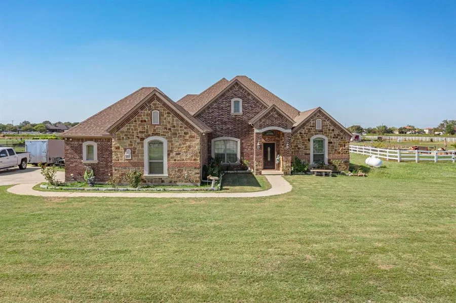 Welcome to this stunning one-story home nestled on over 2 acres of beautifully landscaped grounds. Abundant natural light floods every corner of the house, creating a warm and inviting atmosphere. The formal dining room offers versatility, easily serving as a family room. The study features French doors, offering a perfect retreat for work or quiet reading. Step into the open family room, where wood floors and a striking cast stone fireplace create a cozy focal point, perfect for gatherings. The heart of the home is the exquisite kitchen, featuring granite countertops, a spacious island with a breakfast bar, a gas cooktop, and a double oven. Breakfast nook with built-in cabinets. Enjoy the serene outdoor space from the covered patio, ideal for relaxing or entertaining. An oversized storage area offers plenty of room for tools and equipment. This property combines luxury and comfort, offering a peaceful retreat while still being conveniently located. Dont miss this opportunity!!